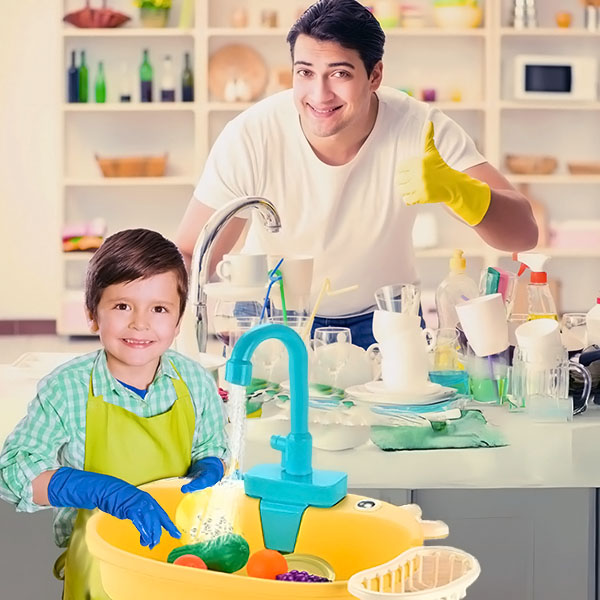 🧼 Насърчава самостоятелността – децата могат да мият съдове, зеленчуци и играчки