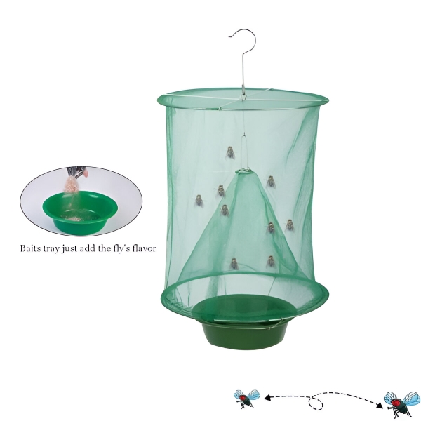 Този висящ капан за мухи е безвреден, без токсични инсектициди и химикали. Трябва само да използвате примамка, за да привлечете мухите, и след като влязат в клетката, те ще умрат по естествен път поради липса на храна. Това е най-добрият избор за широки открити пространства като тревни площи, паркове, пазари, столове, ресторанти, кланици, ферми, зелени пояси, тоалетни, помещения за боклук (на земята) и други обществени места.