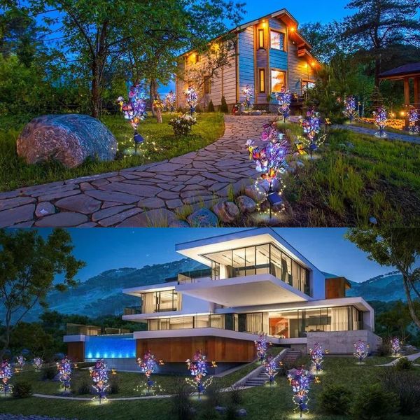 Идеални за градини, тревни площи, пътеки, дворове и други, тези лампи с пеперуди носят прекрасна светлина и създават романтична и празнична атмосфера, където и да бъдат поставени. Използвайте ги, за да осветявате пътеки, да украсявате партита на открито или да подчертавате красотата на градинския си пейзаж.