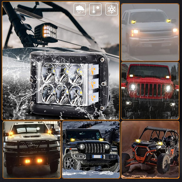 Изработени от висококачествени материали, включително алуминиев корпус, устойчив на ръжда, и превъзходен силикон, тези светлини са създадени да издържат на сурови условия. Те имат IP68 водоустойчив рейтинг, който ги защитава от дъжд, прах, пясък и високи температури. С продължителност на живота над 50,000 часа, техният енергийно ефективен дизайн помага за поддържане на здравето на батерията на вашия автомобил.