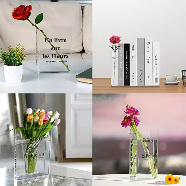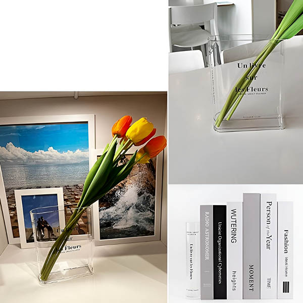 С дебелина 3 мм, вазата имитира външния вид на стъклото, като същевременно предлага повишена издръжливост и устойчивост на натъртване. Това гарантира, че вашата ваза във формата на книга ще остане красива и функционална в продължение на години.