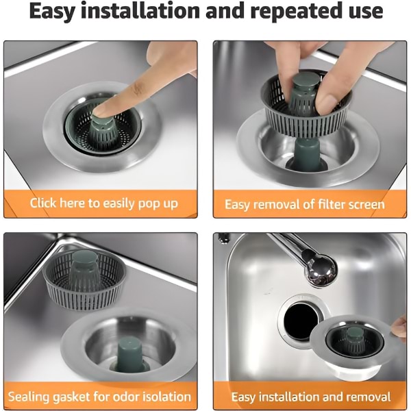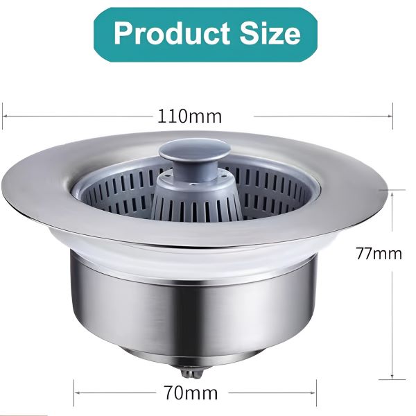 Това решение „всичко в едно“ работи като цедка, запушалка и филтър за миризми – поддържа мивката ви чиста, суха и без миризми.