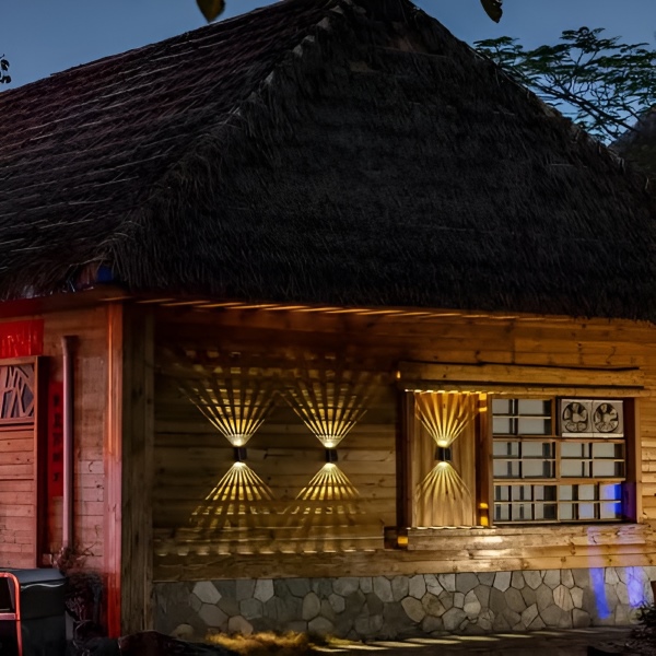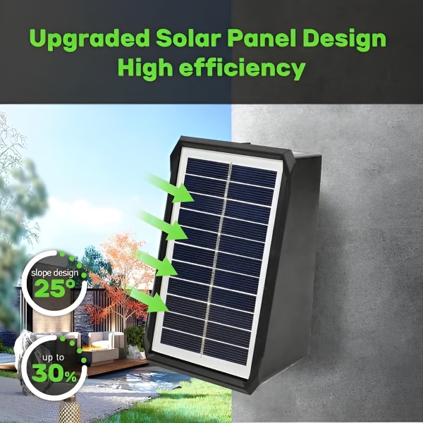 Тези соларни стенни лампи се зареждат през деня и автоматично светят през нощта—идеални за входове, веранди или тераси.